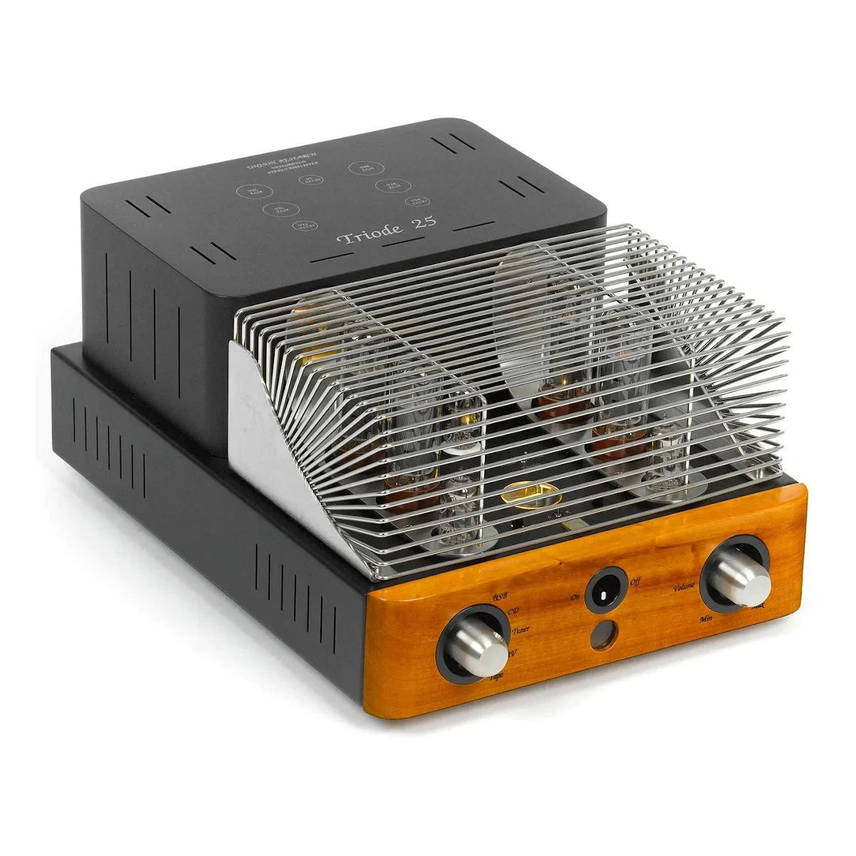 The new Triode amplifier 25 has experienced a long and painstaking design and testing period despite the considerable experience already gained in the construction of its predecessor, the Triode 20. The Triode 25 can operate in two modes: triode and pentode. The latter is capable of delivering a maximum power output of over 45W per channel with a load of 6 ohms with harmonic distortion extremely contained across the entire audio band.
